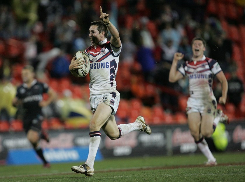Mitchell Pearce scores against Penrith in his rookie season of 2007.