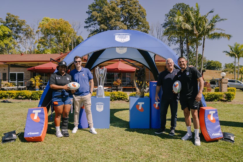 The Telstra Footy Country Tour has clocked over 9,500 kilometres as it ventured throughout footy country over 4 weeks taking the prestigious Proven-Summons trophy and the NRL Telstra Women's Premiership Trophy to Aurukun, Mackay, Rockhampton, Cherbourg, Toowoomba, Lismore, Coffs Harbour, Mildura, Queanbeyan, Bathurst, and Penrith.