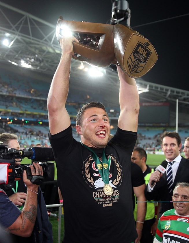 The powerful Englishman’s legacy was cemented in the 2014 grand final when he defied the pain of a fractured cheekbone to lead the Rabbitohs to a drought-breaking premiership. Burgess suffered the injury in a head clash with Canterbury’s James Graham in the opening minute but bravely stayed on the field and went on to collect the Clive Churchill Medal as Souths won their first title since 1971.