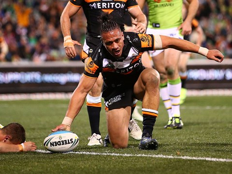 Man of the match James Tedesco was brilliant for the Wests Tigers, running for over 200 metres in kick returns and counter attacks, constantly threatening the Raiders line.