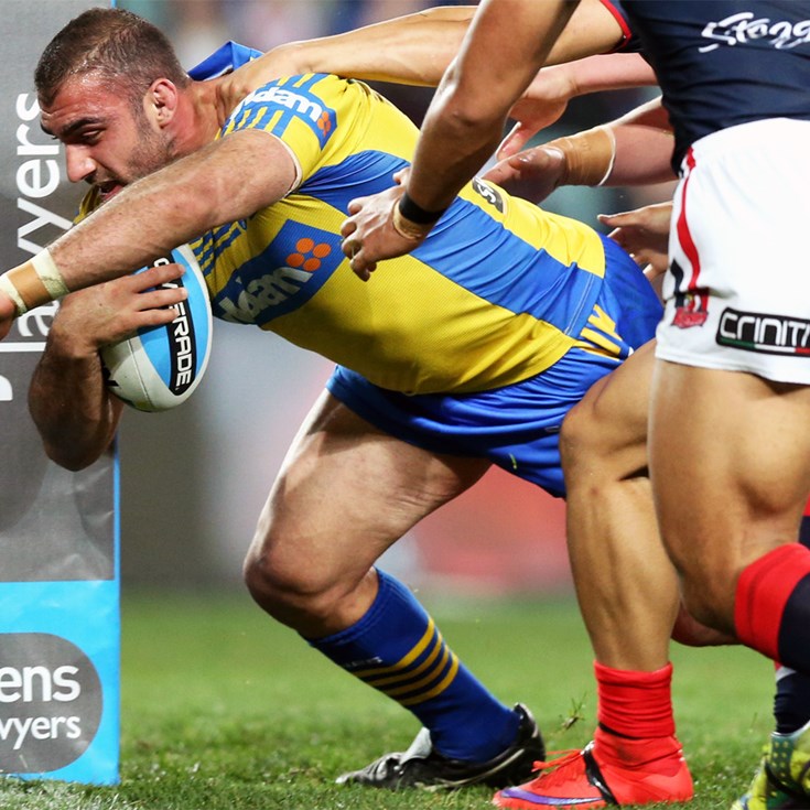 First points came from Eels skipper Tim Mannah, who barged over for his second of the year under the sticks after hitting a flat ball from Nathan Peats out of dummy half.