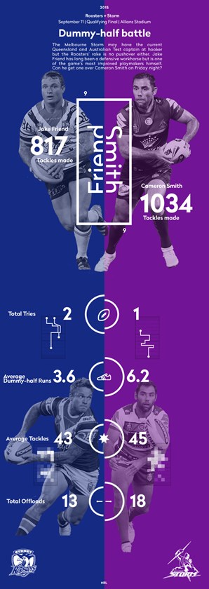 One of the NRL's best young hookers goes up against the best dummy-half in the game when the Roosters play the Storm on Friday night.