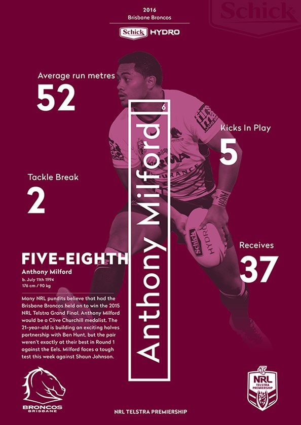 Two of the most exciting playmakers in the NRL go head-to-head in Round 2 as young Broncos five-eighth Anthony Milford takes on Warriors superstar Shaun Johnson.