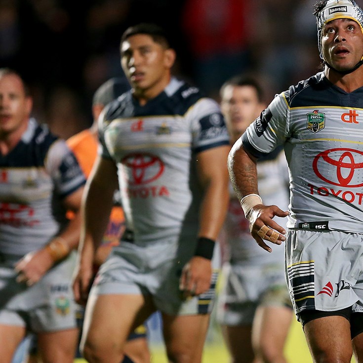 A few errors and penalties at the wrong time gave the visitors field position in the first half and they took advantage in a three-try burst where Manly didn't touch the ball and despite a sluggish period in the second half where their execution fell away, the North Queenslanders kicked away again to complete the rout.