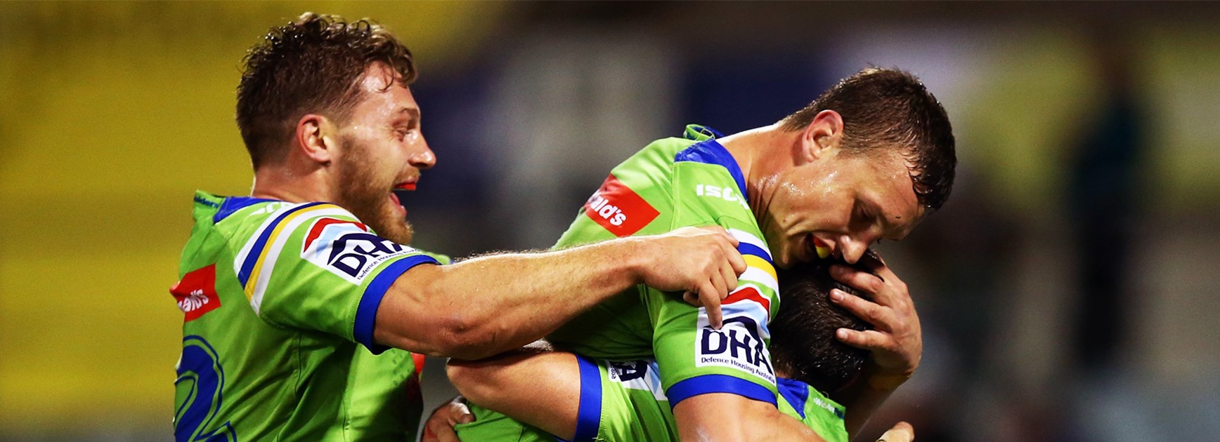 The onslaught continued five minutes later as Wighton leapt highest to reel in an Aidan Sezer kick to score before the Raiders fullback put on a beautiful move close to the line to send Papalii over.