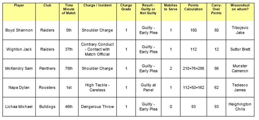 Roosters forward Dylan Napa will miss his side's clash with the Storm after he was found guilty of a grade 1 careless high tackle at the NRL judiciary on Wednesday night.