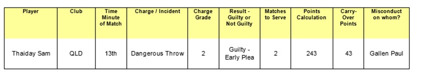 Thaiday will miss the next two NRL Telstra Premiership matches for the Broncos against the Bulldogs and Storm, but will be available for Queensland in Game Three of the Origin series at ANZ Stadium on July 13.
