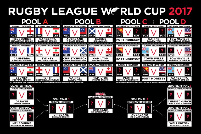 The Rugby League World Cup 2017 announced the draw for the tournament to be co-hosted by Australia and New Zealand and Papua New Guinea on Tuesday.