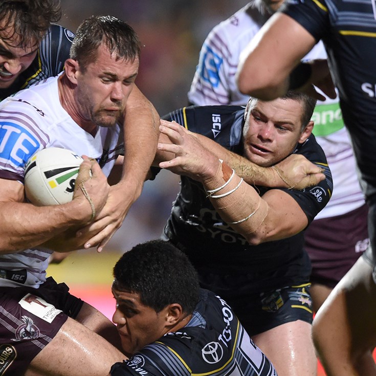 Manly opened strongly in the second half, forcing a dropout off their second set with the ball after dominating the Cowboys forwards through the middle.