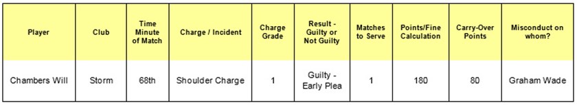 With the early guilty plea he will miss one match and will have 80 carryover points to his name but will be free to play the Warriors in Round 8.