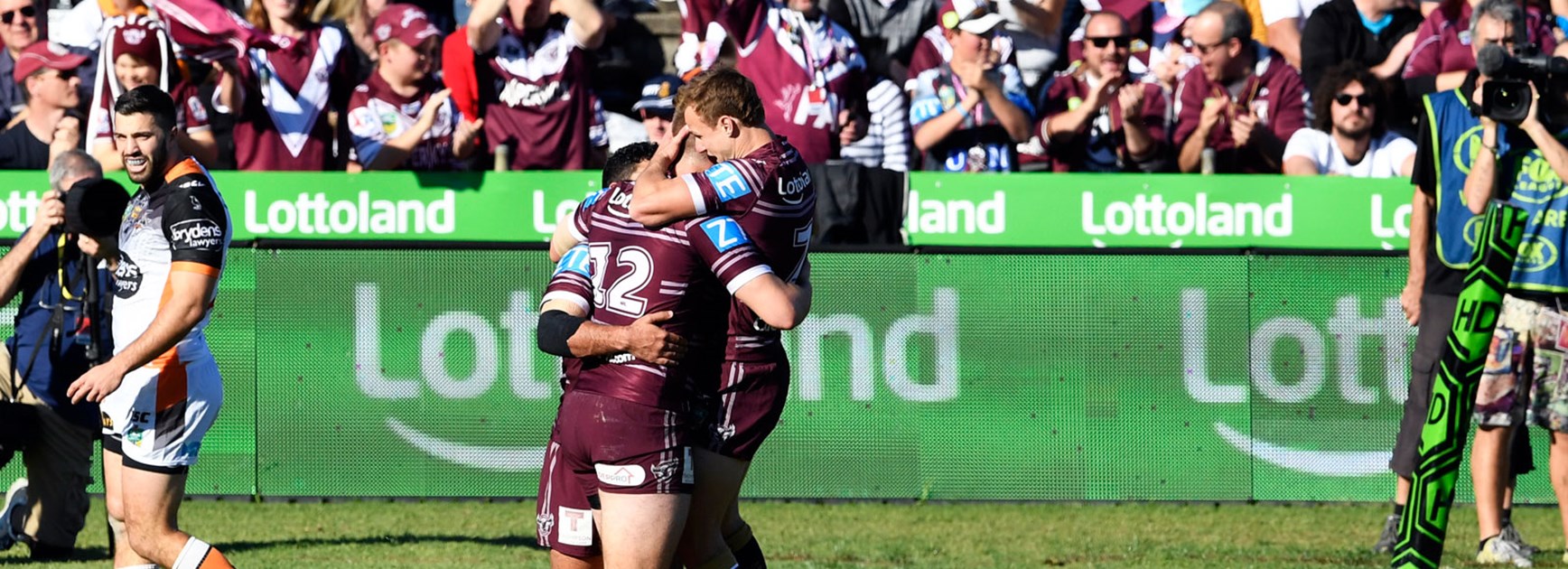 That was as good as it got though; a series of attacking sets from Manly finally paid dividends when Wright bagged his double from a simple overlap play and Aku Uate finally reclaimed the lead for the home team shortly after when he blasted through the Tigers' middle then wrong-footed Tedesco to score under the posts.
