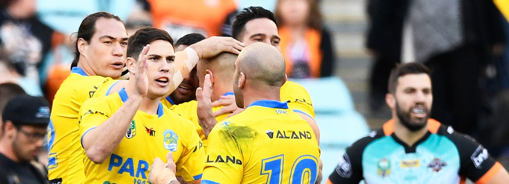Parramatta Eels 17 (French, Radradra, Gutherson tries; Gutherson 2 goals; Norman field goal) defeated Wests Tigers 16 (Tedesco, Watene-Zelezniak tries; Lolohea 4 goals) at ANZ Stadium. Half time: Eels 10-8. Crowd: 30,901.
