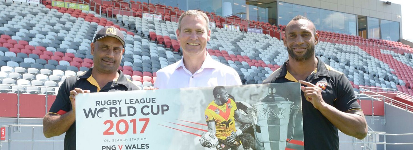 During an event held on Tuesday at the Oil Search National Football Stadium, RLWC2017 CEO Andrew Hill unveiled the ticketing details and kick-off times for the three RLWC2017 pool games to be contested in the PNG capital, Port Moresby.