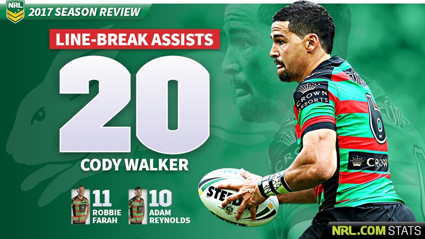 As well as leading the Rabbitohs in this category, Cody Walker had the third-highest number of try assists in the NRL, behind only Titans halfback Ash Taylor and Manly skipper Daly Cherry-Evans.