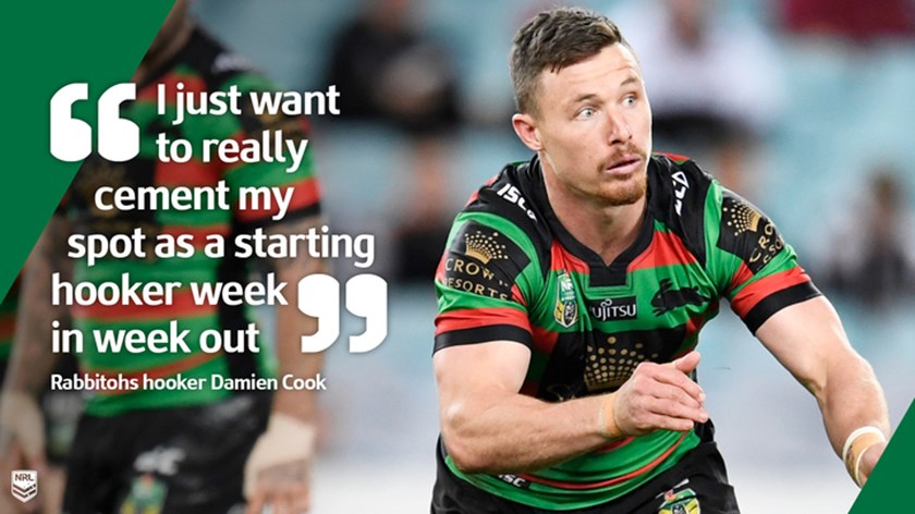 South Sydney Rabbitohs hooker Damien Cook has set himself some lofty targets for 2018 – wresting the No.9 jersey from Robbie Farah and putting himself in contention for Nathan Peats's NSW jersey.