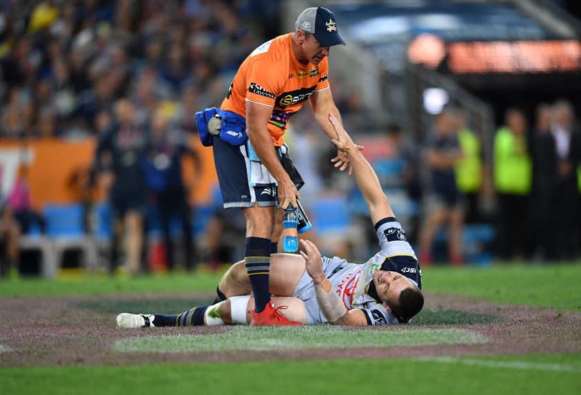 Cowboys back-rower Shaun Fensom injured in the 2017 grand final.