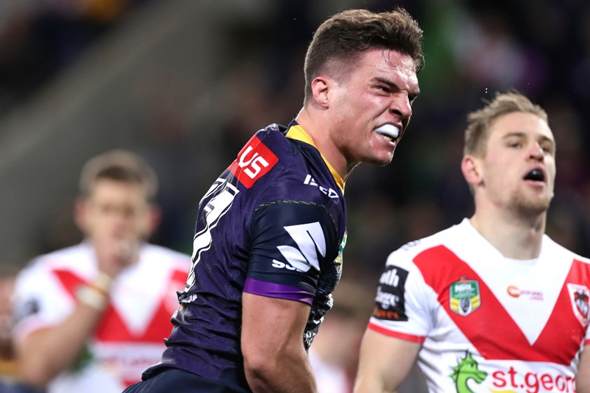 Hughes put the Storm ahead after a rampaging Nelson Asofa-Solomona run, with the fullback overcoming three defenders to push the Storm ahead with just over 20 minutes to go.