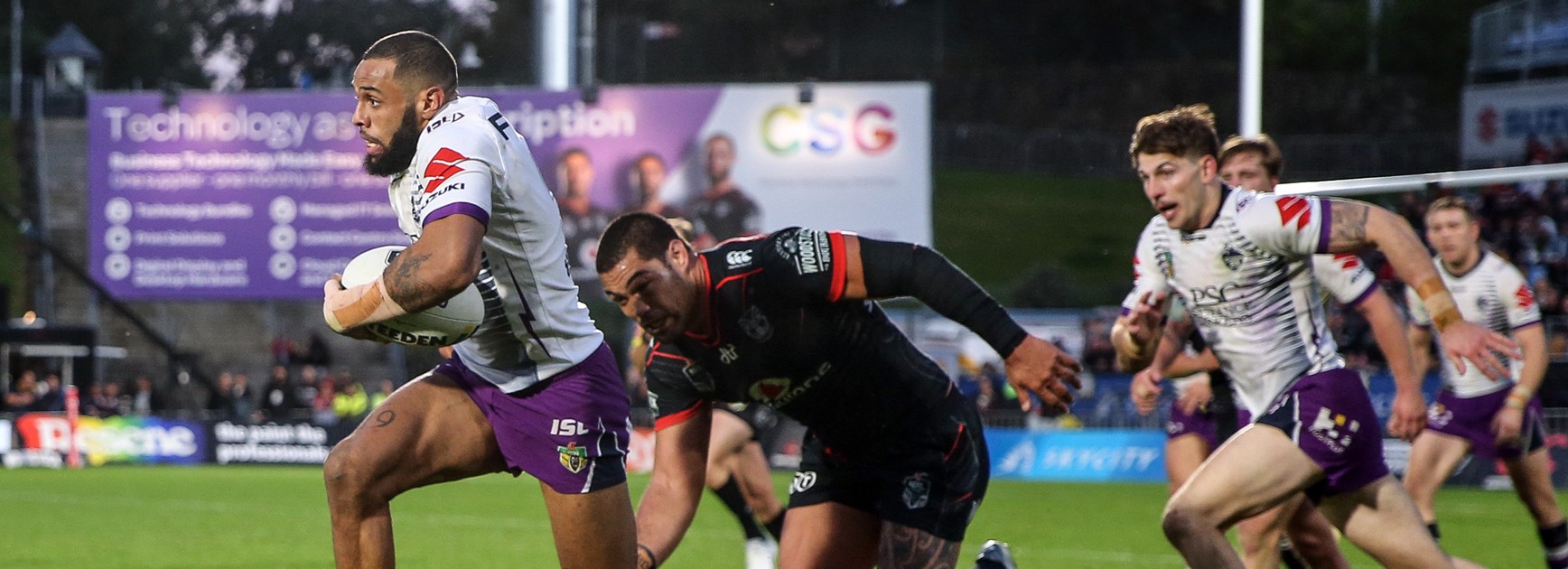 Melbourne has pipped the Cowboys, Roosters and Sea Eagles by a solitary point in low-scoring affairs since round 12 and Sunday's two tries to one victory at Mt Smart has them in pole-position, albeit with an offensive engine missing its usual beat.
