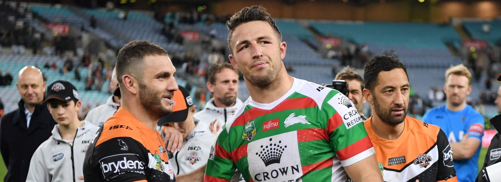 Rabbitohs strongman Sam Burgess says he might reach out to Robbie Farah to make sure he's alright after their Saturday night altercation at ANZ Stadium - because of the amount of publicity his tackle on the Wests Tigers hooker has generated.