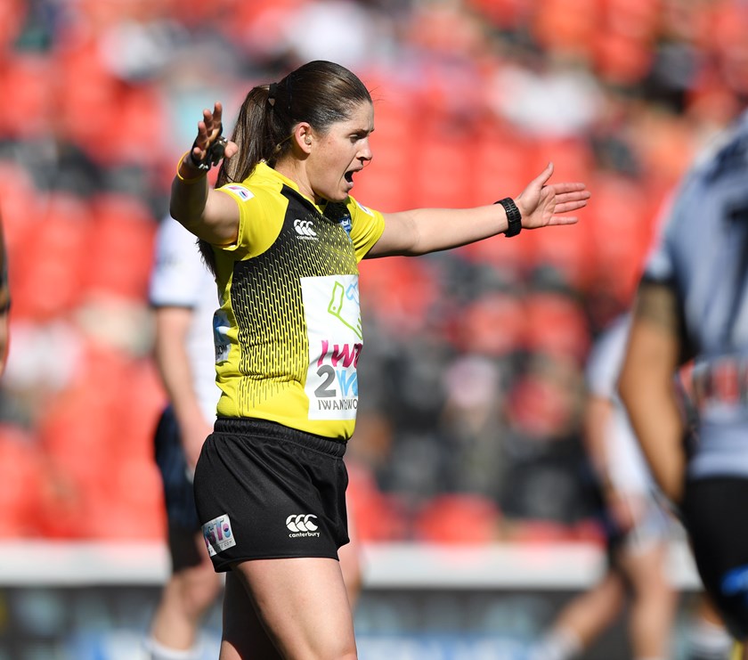Belinda Sleeman and Kasey Badger officiate as touch judges in the NRL every weekend, have been on the sidelines in Test matches, and referee Intrust Super Premiership and Intrust Super Cup matches.