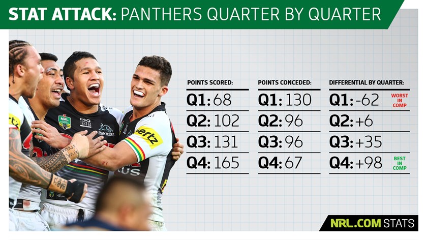 In the third quarter, the Panthers have scored the second highest amount of points with 130 to sit behind St George Illawarra, while conceding a respectable 96 points for an overall advantage of 34.