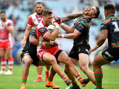 Souths edged the tackle busts 63-61 and St George Illawarra the offloads by 23-21. Souths defended a little better (effective tackle rate 87.6% to 86.9%) although the Dragons had a significant advantage in metres gained per match by 1703 to 1567.