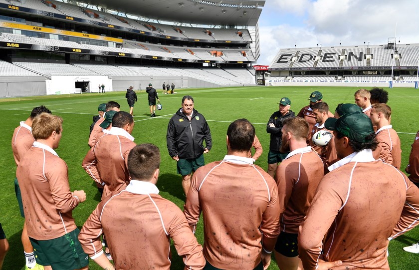 The Kangaroos trained in brown jerseys, which were based on those worn by the Australian team in the first Test after World War I in 1919, when they took part in a captain's run at Eden Park on Friday, while each player has VII embroidered on their shorts.