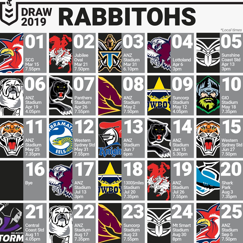 Here is all you need to know about the South Sydney Rabbitohs 2019 Telstra Premiership draw.