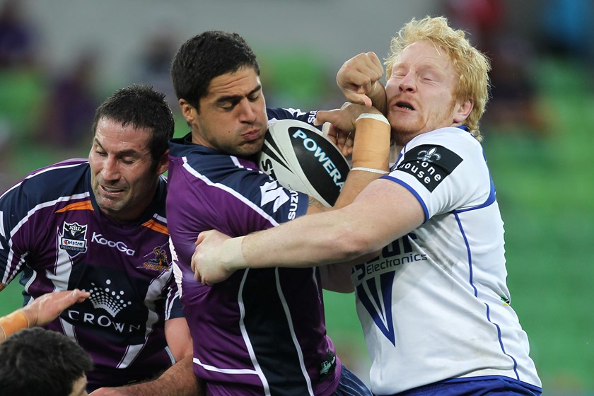 In a match full of controversy, Bulldogs prop James Graham was reported over claims he bit Storm fullback Billy Slater's ear in the 26th minute, leading to both teams scrapping for several minutes as tempers flared.