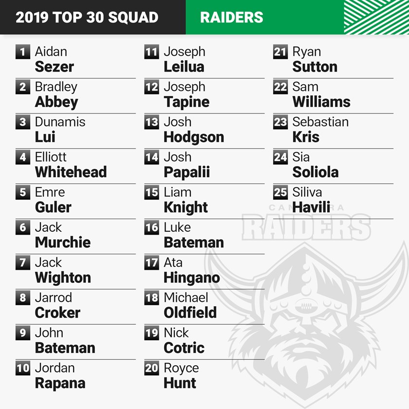 The Raiders have lost a ton of grunt from the engine room with Junior Paulo and Shannon Boyd both gone. Playmaker Blake Austin has gone to the UK while hooker Craig Garvey is released. England Test back-rower Josh Bateman is the big signing, along with his Wigan teammate, prop Ryan Sutton. The club does still have five spots open in the top 30. Kurt Baptiste and Clay Priest also drop off the books in 2019. Corey Horsburgh and Hudson Young are set to be added to the senior squad.