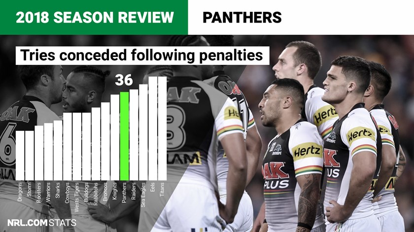 The Panthers didn't have any issues putting points on the board but down the other end they weren't able to absorb the pressure on their line as well as the top-four teams, ranking fifth overall for most tries conceded following penalties (36). Peachey led the penalty count for Penrith after being pinged 25 times.
