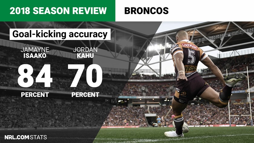Isaako, the competition's leading point scorer, was a revelation with the boot with a strike rate of 84%. He landed 65 of 80 conversion attempts and 29 of 32 shots for penalty goals and won games on his own due to his accuracy, with the 9-8 victory over the Wests Tigers in golden point the most memorable.