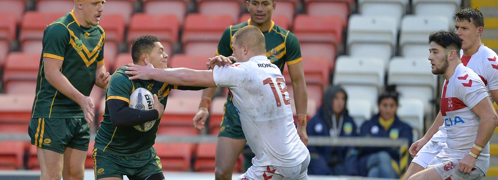 England led 12-0 at the break and added a penalty goal before the Australians hit back via a try to Penrith Panthers young gun Stephen Crichton.