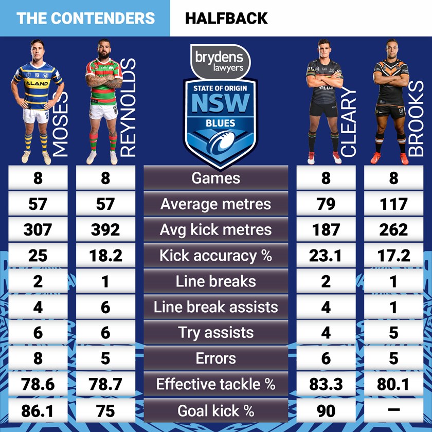 Candidates: Nathan Cleary, Adam Reynolds, Mitch Moses, Luke Brooks
