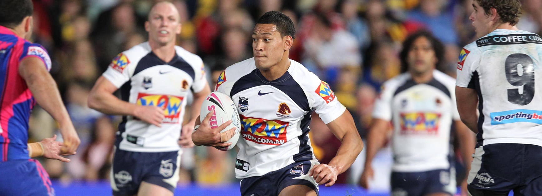 Test winger Israel Folau equals the Broncos’ record for most tries in a match when he crosses four times in a 32-18 defeat of the Gold Coast. He still shares the record with six other players: Steve Renouf, Wendell Sailor, Karmichael Hunt, Corey Oates, Justin Hodges and Denan Kemp.