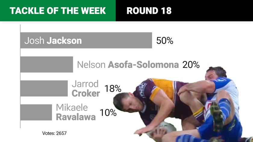 Josh Jackson's textbook tackle at Suncorp Stadium last Thursday night has earned him Tackle of the Week honours for Round 18.