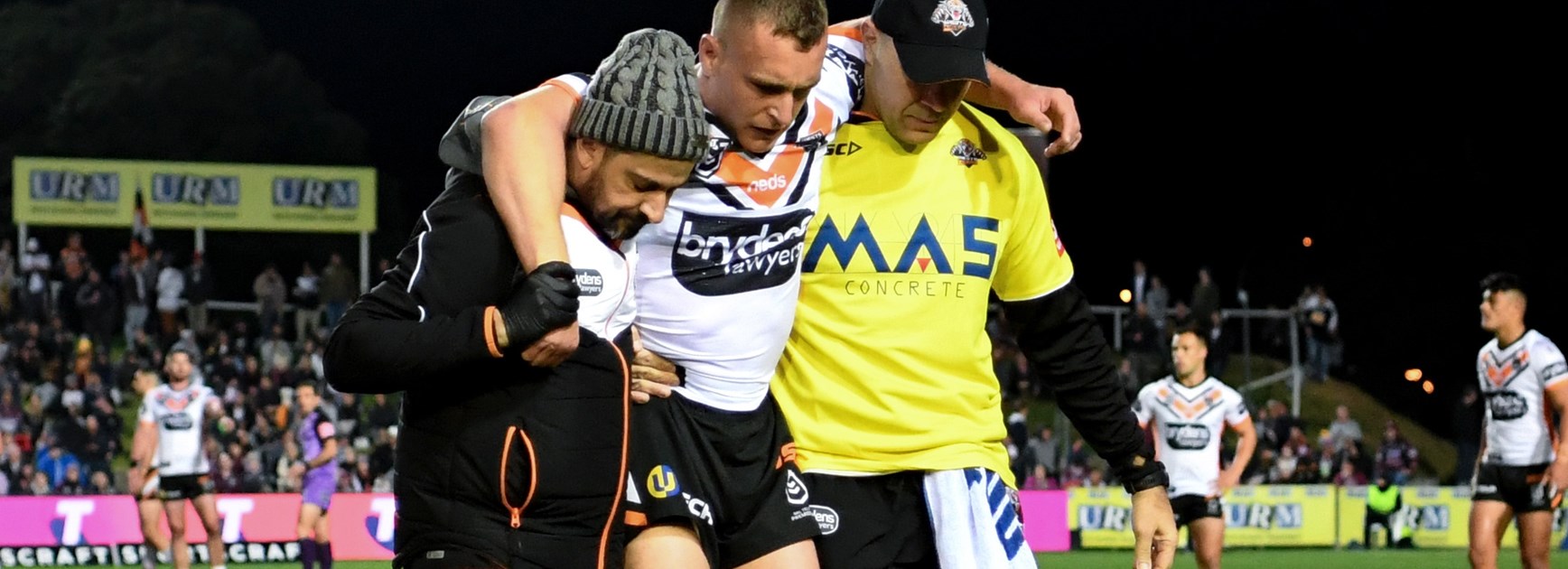 Young Wests Tigers hooker Jacob Liddle suffered a season-ending injury when his left knee appeared to collapse inward after some accidental friendly fire, with debutant Tommy Talau colliding with his knee in just the sixth minute.