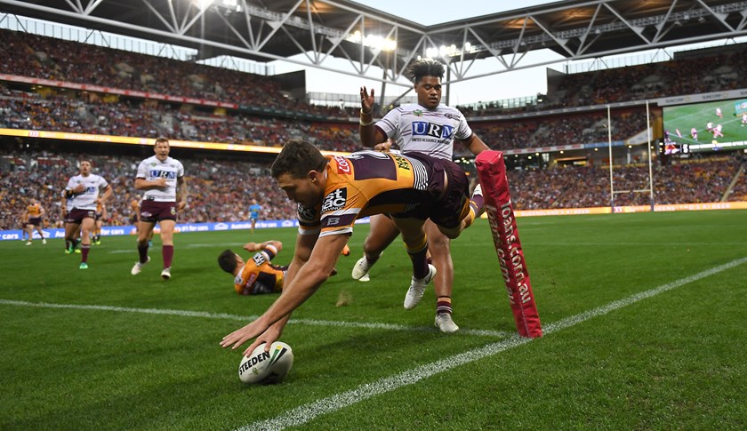 Corey Oates equals the record for most tries in a match for the Broncos with four as Brisbane belt Manly 48-16 at Suncorp Stadium to secure sixth spot on the ladder and a home final. Oates was on the board in just the second minute off an Anthony Milford grubber and scored again in the 26th, 50th and 58th minutes. Winger Jamayne Isaako contributes 20 points to finish with 233 points for the season and become the first rookie in 27 years to top the point scorers list.