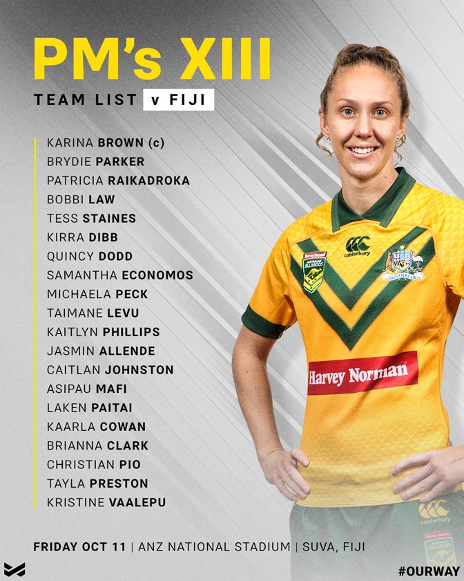 The Australian PM’s XIII Women’s side will be captained by Sydney Roosters and Queensland player Karina Brown.