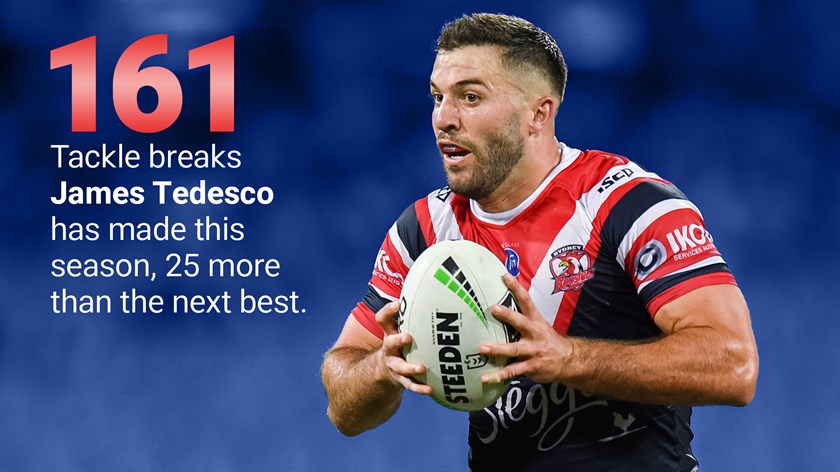 161 Tackle breaks James Tedesco has made this season- 25 more than his nearest rival.