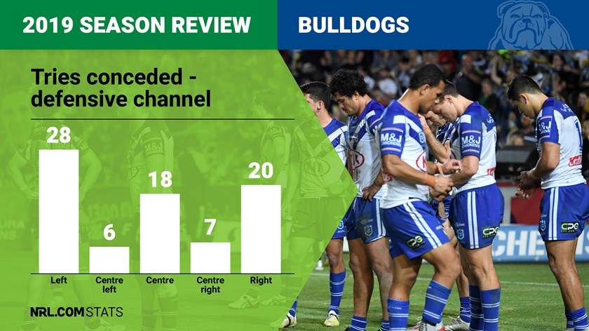The Bulldogs' woes in defence came through the middle and on both edges in 2019.