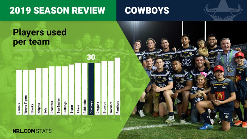 North Queensland had an unlucky year on the injury front, using 30 players throughout the year as a result - the equal-third highest amount.