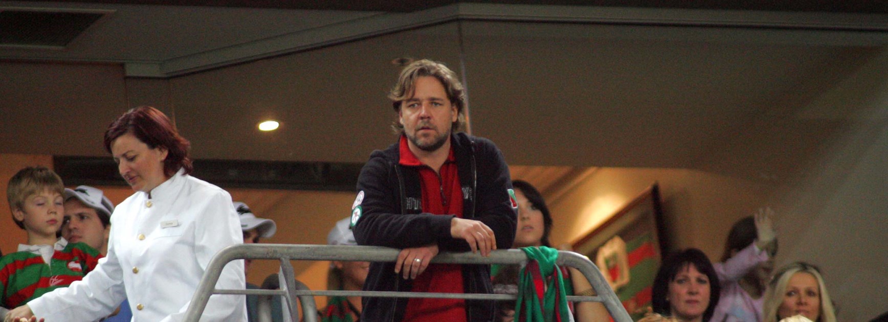 Oscar-winning actor Russell Crowe offers to underwrite a contract for a South Sydney player in 2002.