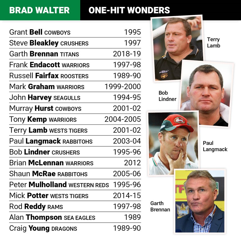 Since Bennett and Furner took the Raiders to the 1987 grand final as co-coaches, there have been 18 coaches who lasted no more than two years in their first stint and never worked as an NRL head coach again.