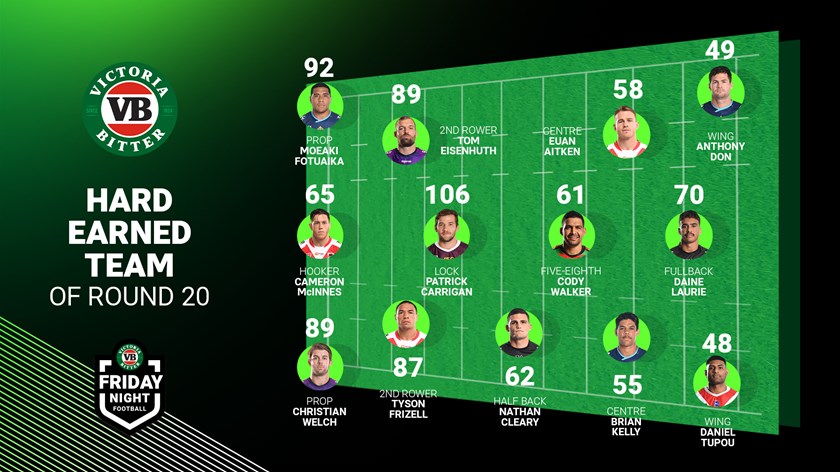 Each player's VB Hard Earned index score is calculated by doubling their total runs and adding a point for every tackle, offload, decoy, support, charge down and tackle break.