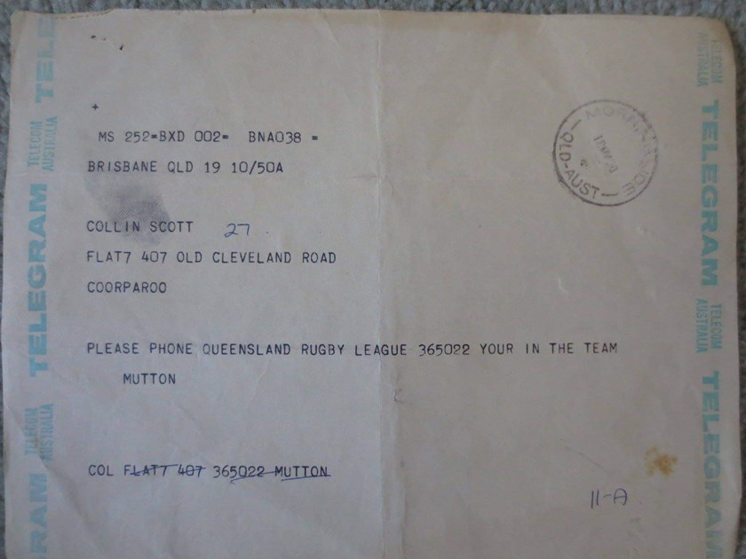 Scott, who incredibly was in reserve grade at the time, was presented with a telegram which ultimately changed the course of his life. It said: "Please phone Queensland Rugby League on 365022. You’re in the team. Mutton."
