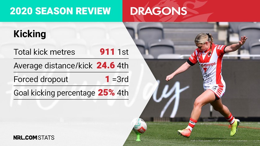 The Dragons kicked the ball most during the regular season to better all teams for total kick metres but this doesn't highlight the type of kicks that were generated, particularly under pressure.