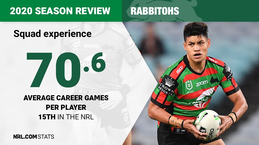 Based on career games, Souths had the second-most inexperienced squad with an average of 70.6 NRL appearances per player.