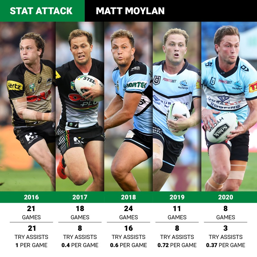 Johnson was Cronulla's try assist king last year with 23 in 16 games; Moylan's record suggests he can pick up the creative slack.