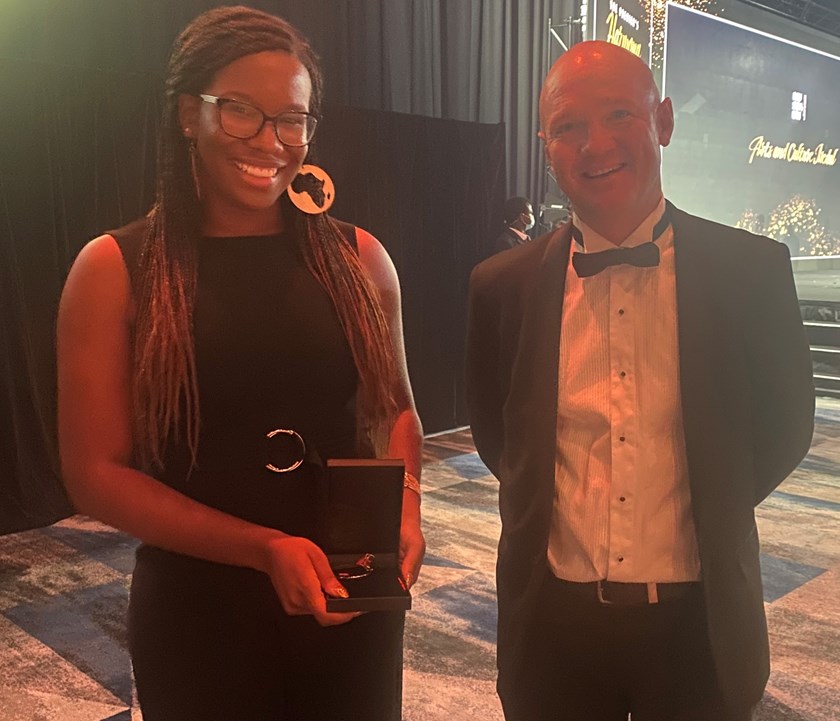 Angelica Ojinnaka received the prestigious National Rugby League Youth Medal - which recognises a person under 25 who has helped foster inter-cultural connections and understanding- for her work including mental health and gender equality advocacy.